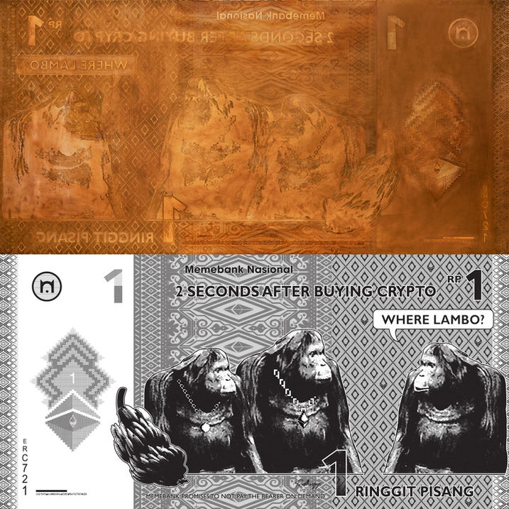 The Memebank series is a subtle critique on how continued money printing by central banks may potentially lead to uncontrolled inflation. Humor aside, the project’s goal was to provoke questioning of current financial systems, as well as to celebrate the collective strength of communities in seeking alternative investments as a means of hedging against inflation.