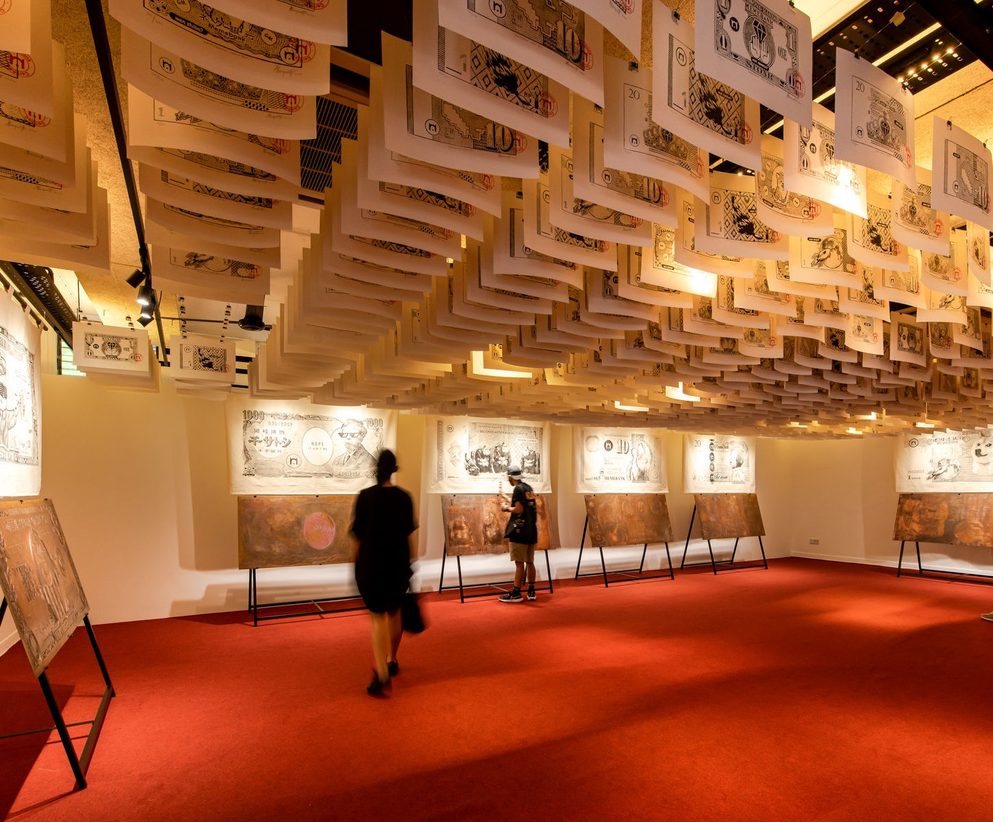 The Memebank project represents the artist’s immersion into the world of blockchain and cryptocurrency, through combining experimental performance art and a full-fledged art exhibition. Launched in January 2022, the exhibition-parody featured six banknotes designed from large etched copper plates, with meme characters inspired by real world currencies, that were displayed in a spoof bank. Both the copper plates and banknotes were turned into NFTs, which could be bid for and purchased accordingly.